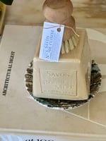 Includes Antique Plate from England, Bamboo Brush with Natural Bristles, and 2 Pound Soap Block.