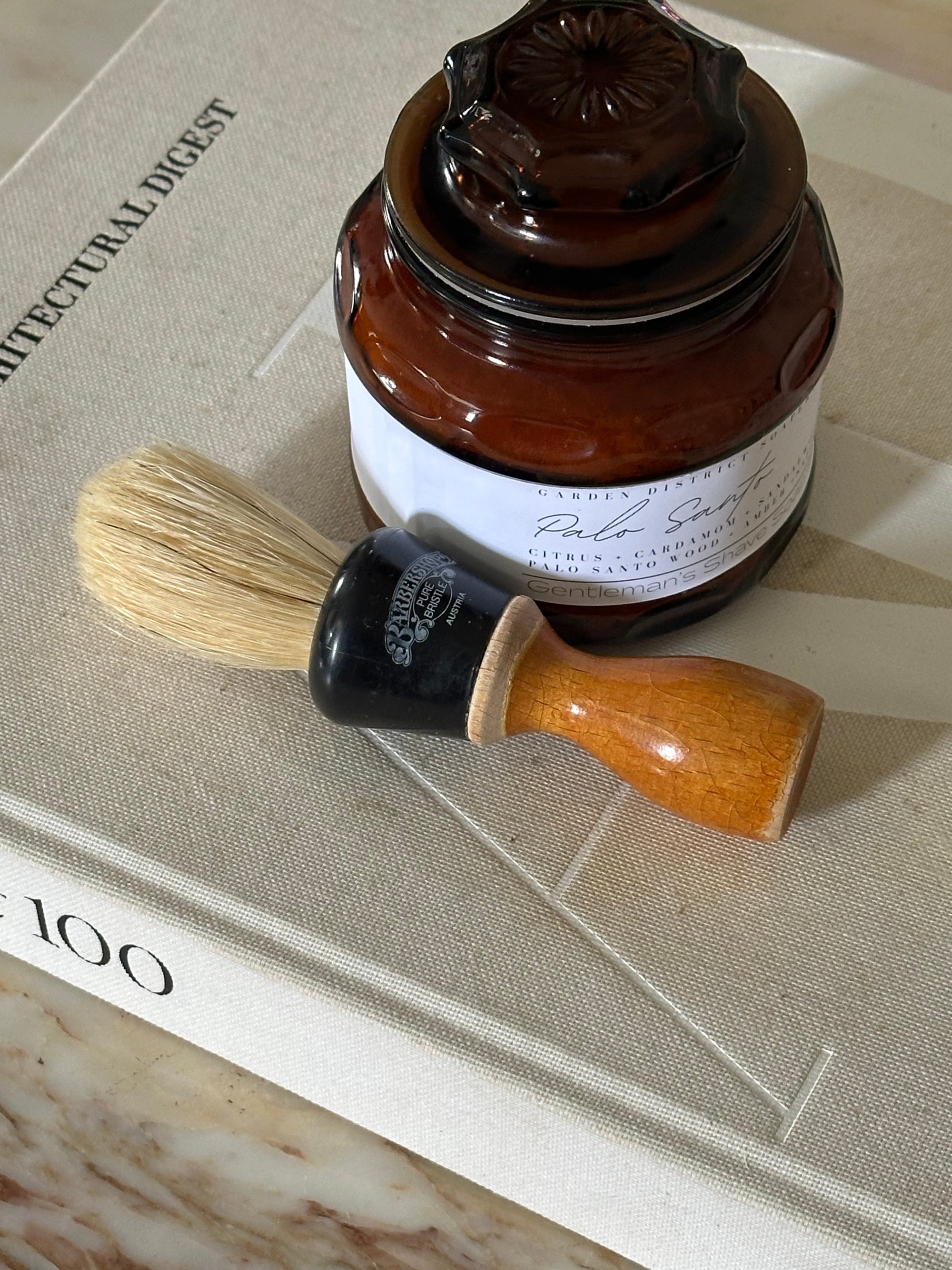 Palo Santo Shaving Soap Set in Antique Amber Lidded Glass